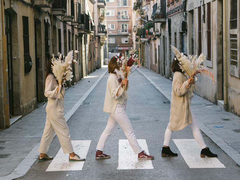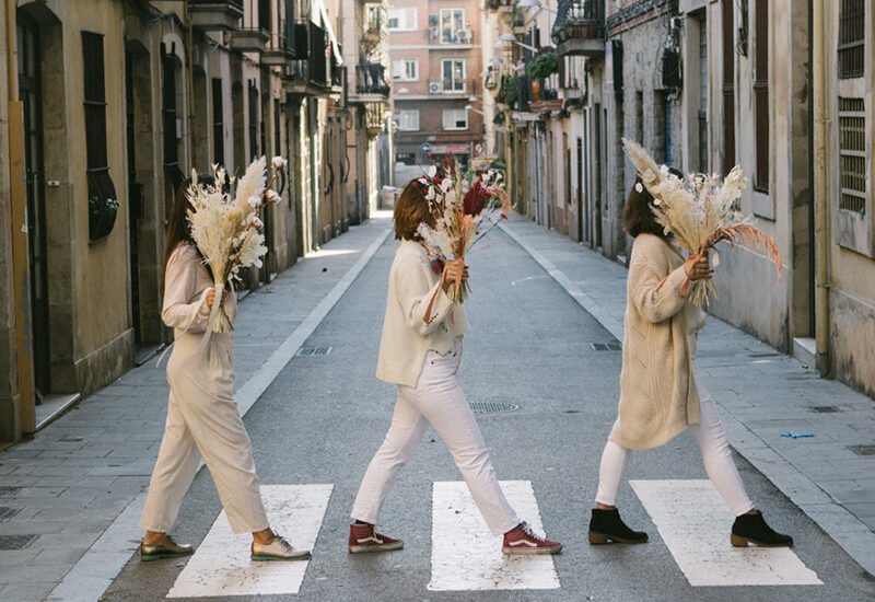 Tres emprendedoras florales abren una tienda efímera en Gracia, Barcelona, durante la Navidad.